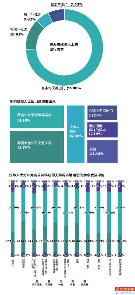 “我是一名是肢体残障人士,乘坐电梯时发现通道太窄,轮椅根本过不去。”“商场里没有无障碍停车位……”今年6月以来,珠海市残疾人联合会、珠海市人民检察院、南方都市报等单位,联合发起了“珠海市无障碍环境调研”,以实地调研、问卷调查和深度访谈等方式展开调研。7月开始,南方都市报对调查结果进行持续报道,反映了珠海无障碍环境的建设、使用及维护情况。报道一出,引发了社会各界的广泛关注。