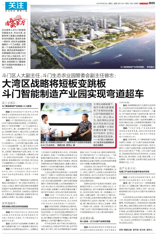 大湾区战略将短板变跳板 斗门智能制造产业园实现弯道超车