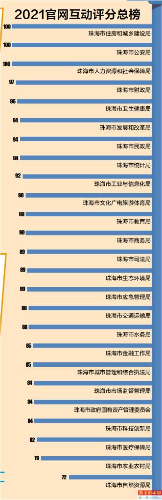 近日,南都记者对珠海市直25个政府部门官网互动交流展开“体验式测评”,整体表现亮眼:珠海市公安局、珠海市住房和城乡建设局、珠海市人力资源和社会保障局3个单位取得满分得佳绩,另有9个单位得分超过90分,11个单位得分超过80分。