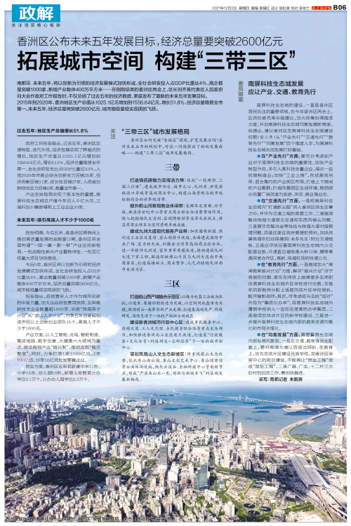 南都讯 未来五年,将以创新为引领的经济发展模式加快形成,全社会研发投入占GDP比重达4%,高企数量突破1000家,新增产业载体400万平方米……在刚刚结束的香洲区两会上,区长刘齐英代表区人民政府向