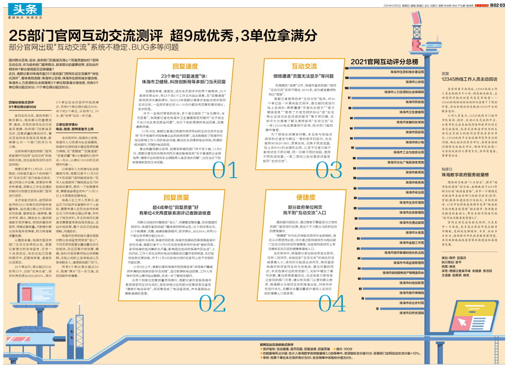 面对群众咨询、投诉,政府部门回复是否用心?答复质量如何?官网互动交流,作为政府部门服务群众、联系群众的重要纽带,实际运作得怎样?群众使用是否足够便捷?近日,南都记者对珠海市直25个政府部门官网互动
