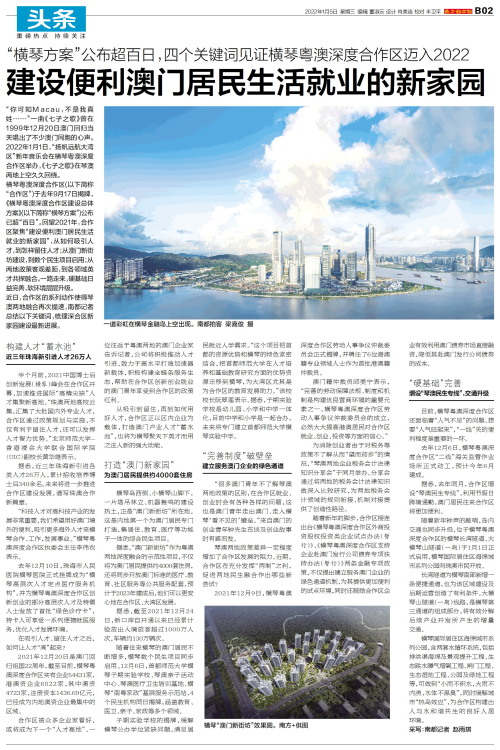 “你可知Macau,不是我真姓……”一曲《七子之歌》曾在1999年12月20日澳门回归当天唱出了不少澳门同胞的心声。2022年1月1日,“扬帆远航大湾区”新年音乐会在横琴粤澳深度合作区举办,《七子