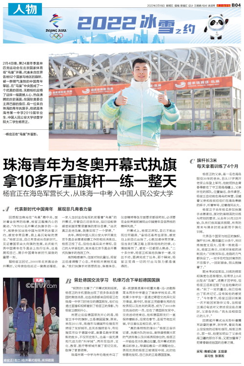 珠海青年为冬奥开幕式执旗 拿10多斤重旗杆一练一整天