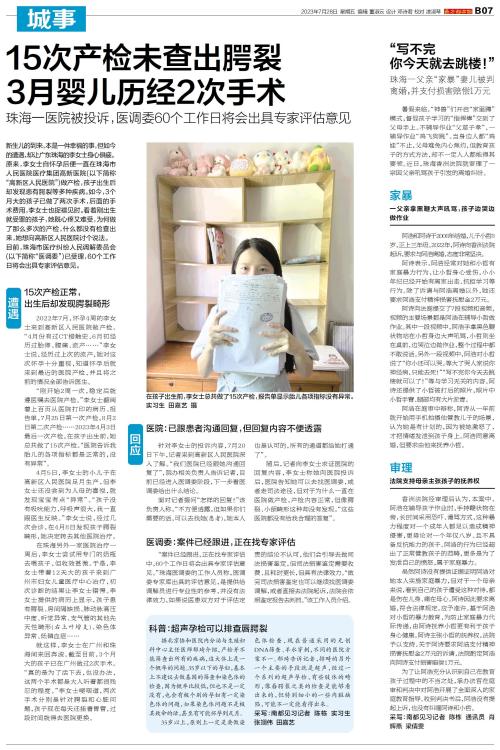 新生儿的到来,本是一件幸福的事,但如今的遭遇,却让广东珠海的李女士身心俱疲。 原来,李女士自怀孕后便一直在珠海市人民医院医疗集团高新医院(以下简称“高新区人民医院”)做产检,孩子出生后却发现患有