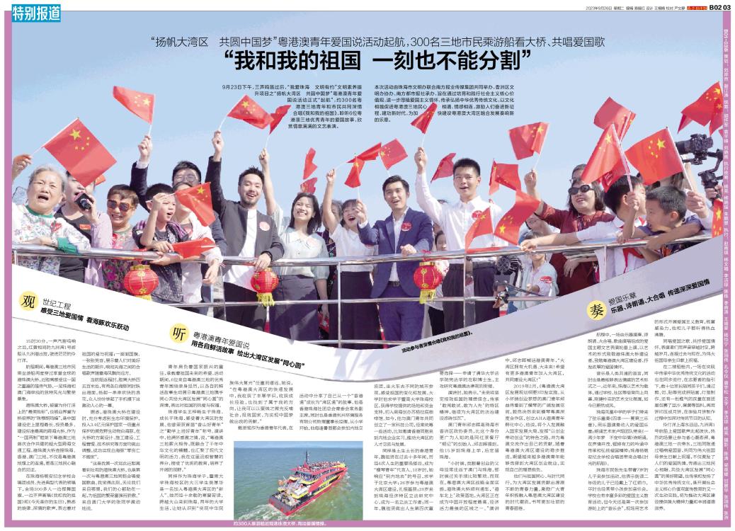 9月23日下午,三声鸣笛过后,“我爱珠海 文明有约”文明素养提升项目之“扬帆大湾区 共圆中国梦”粤港澳青年爱国说活动正式“起航”,约300名粤港澳三地青年和市民共同深情合唱《我和我的祖国》,聆听6