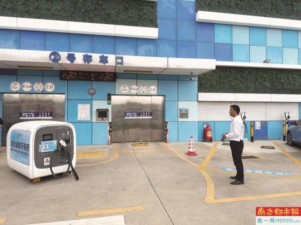 横琴粤澳深度合作区一处立体停车场的智能移动充电桩。