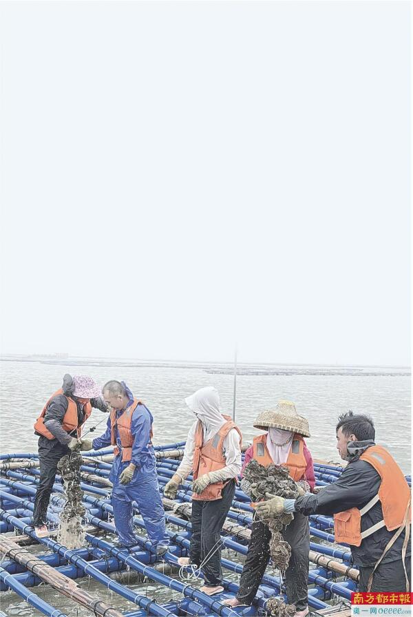 近日,在位于金湾区南水镇的金湾悦禾养殖牧场,新一批成熟的生蚝被蚝农打捞起来。这批生蚝个头大且肥美,不管是清蒸还是烧烤,都是极好的海鲜材料。