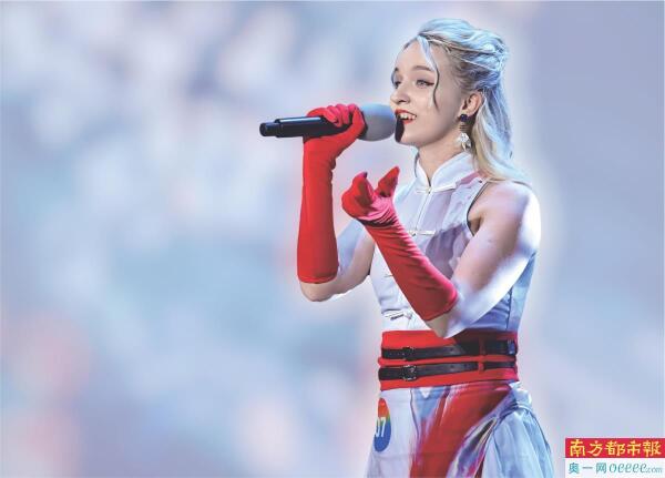 留学生好声音——来华留学生歌手大赛,在中国留学的俄罗斯姑娘梅丽莎正在比赛。 珠海高新区党群工作部供图