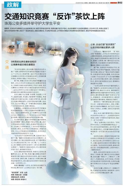 南都讯 大学生作为即将步入社会的栋梁之材,能否守护他们的平安,既牵动着千家万户的心,也关系着整个社会的和谐稳定。2024年12月,珠海公安部门面向大学生群体开展、启动了一批宣传活动,涵盖交通安全、