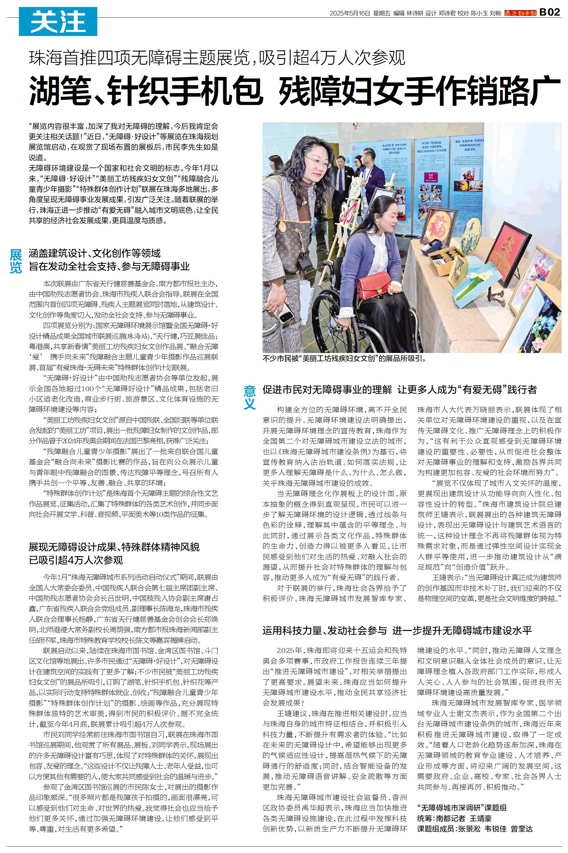 “展览内容很丰富,加深了我对无障碍的理解,今后我肯定会更关注相关话题!”近日,“无障碍·好设计”等展览在珠海规划展览馆启动,在观赏了现场布置的展板后,市民李先生如是说道。 无障碍环境建设是一个国