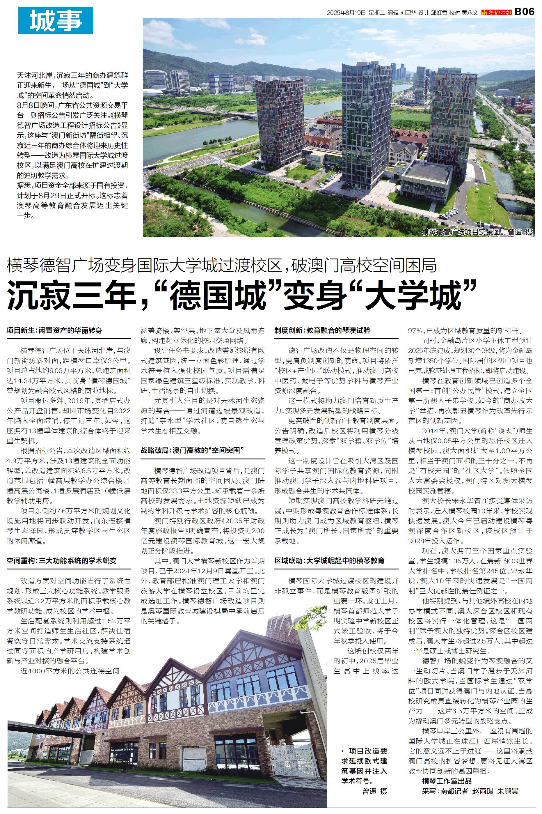 天沐河北岸,沉寂三年的商办建筑群正迎来新生,一场从“德国城”到“大学城”的空间革命悄然启动。 8月8日晚间,广东省公共资源交易平台一则招标公告引发广泛关注。《横琴德智广场改造工程设计招标公告》显