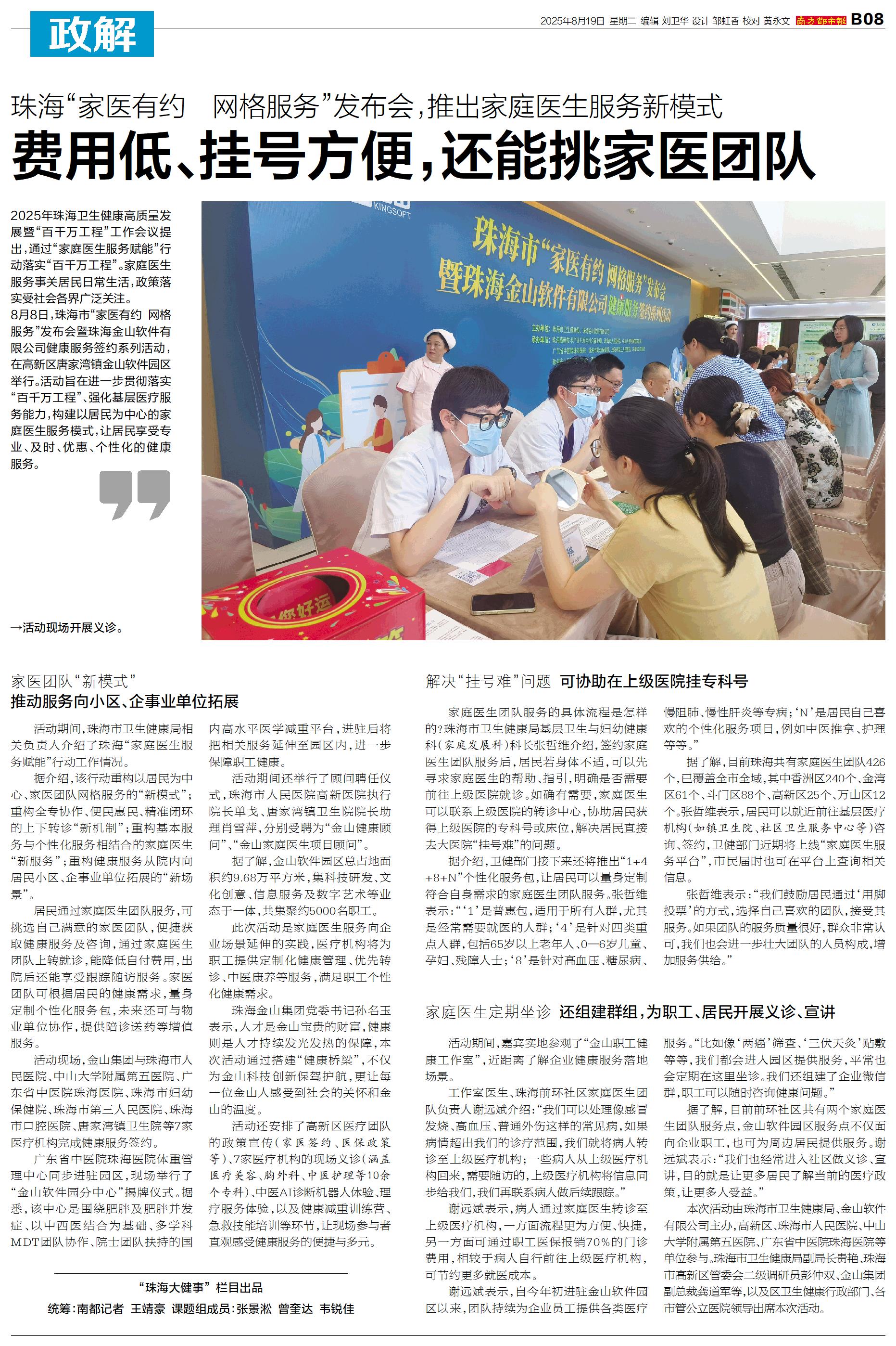 2025年珠海卫生健康高质量发展暨“百千万工程”工作会议提出,通过“家庭医生服务赋能”行动落实“百千万工程”。家庭医生服务事关居民日常生活,政策落实受社会各界广泛关注。 8月8日,珠海市“家医有