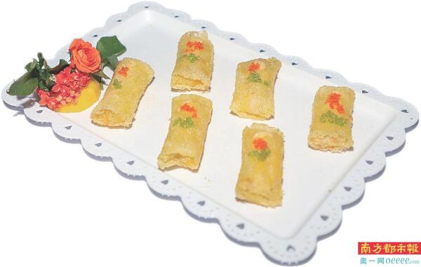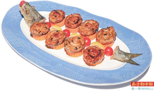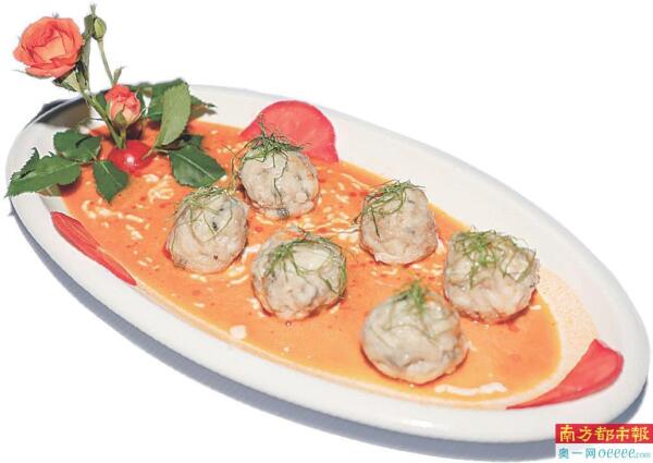 何爱民以“黄金之路(鲈)”为名,将酥炸海鲈搭配芒果与苹果果肉,咸香与果酸交错,仿若“一口咬碎盛夏,满嘴尽沐金秋”。