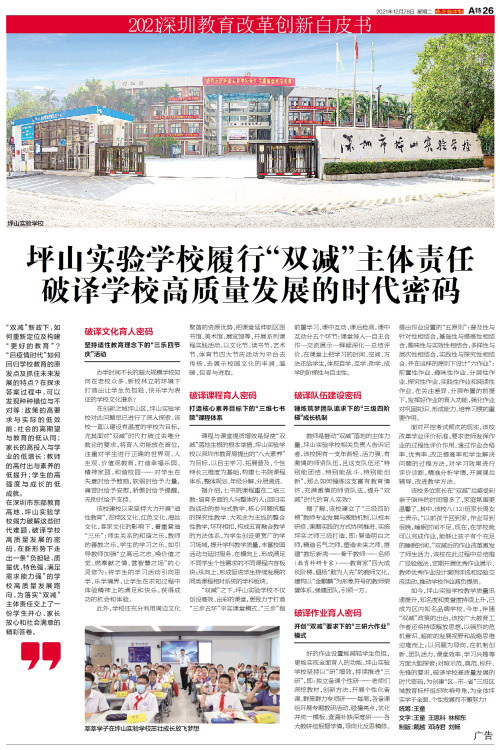坪山实验学校履行“双减”主体责任 破译学校高质量发展的时代密码