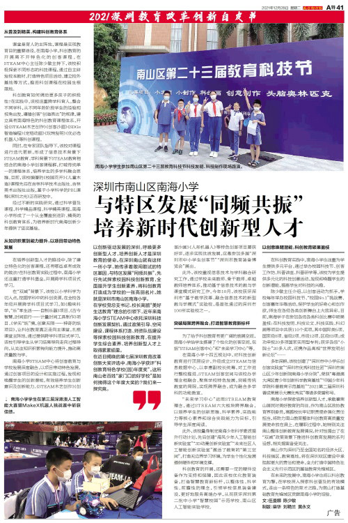 以创新驱动发展的深圳,呼唤更多创新型人才,培养创新人才是深圳教育的使命。在深圳南山就有这样一所小学,她传承着敢闯敢试的特区基因,与特区发展“同频共振”,先行先试探索校园科技创新教育,全面提升学生创