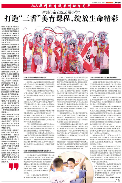 近日,由南方都市报社联合深圳市教育学会、深圳大学湾区教育研究院共同主办的第七届“深圳教育改革创新大奖”评选中,深圳市宝安区艺展小学凭实力斩获“美育特色学校(园)年度奖”称号。艺展小学作为宝安区贯彻