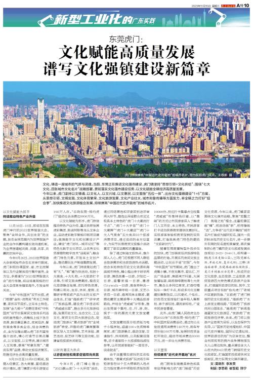 文化,铸造一座城市的气质与灵魂。当前,东莞正在推进文化强市建设,虎门镇坚持“思想引领+文化供给”,围绕“七大文化、四张城市文化名片”战略部署,贯彻落实文化强市建设任务,以文化赋能全镇经济高质量发展