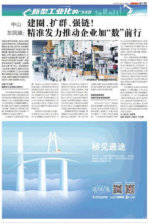 制造业数字化转型,是中山传统制造业转型升级、实现高质量发展的必由之路。近年来,东凤镇积极贯彻落实省市“制造业当家”重要部署,锚定数字化转型赛道,在建圈、扩群、强链上精准发力,打造数字化联盟拓展“朋