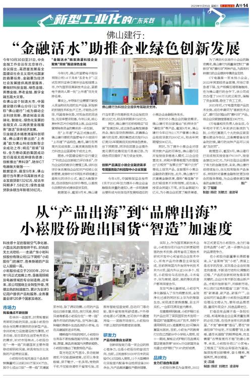 科技感十足的智能空气净化器、六面出风的宠物烘干机、时尚的无土光培机……走进广东小崧科技股份有限公司(以下简称“小崧股份”)的展厅,各类新颖的产品让人眼前一亮。 小崧股份成立于2000年,2014
