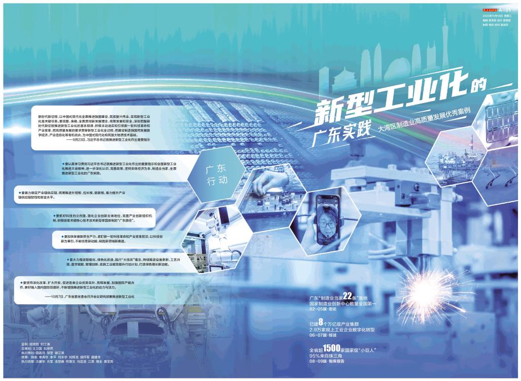 广东行动 新时代新征程,以中国式现代化全面推进强国建设、民族复兴伟业,实现新型工业化是关键任务。要完整、准确、全面贯彻新发展理念,统筹发展和安全,深刻把握新时代新征程推进新型工业化的基本规律,积