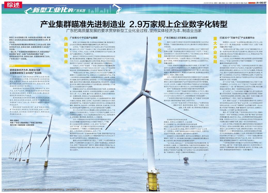 新型工业化是强国之路,先进制造业是强国之基,推进新型工业化和先进制造业集群高质量发展事关全局、事关长远。 广东把高质量发展的要求贯穿新型工业化全过程,坚持实体经济为本、制造业当家,全面推进新型工