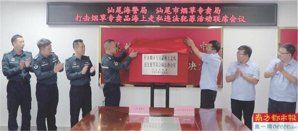 汕尾海警、汕尾烟草联合执法办公室揭牌现场。
