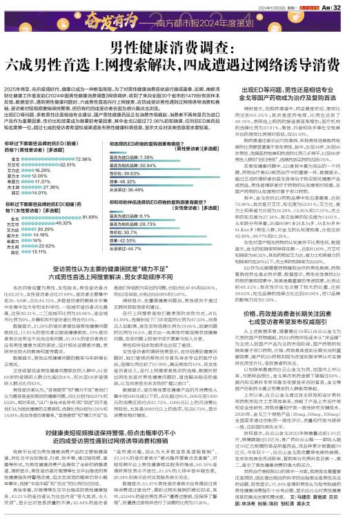 男性健康消费调查:六成男性首选上网搜索解决,四成遭遇过网络诱导消费