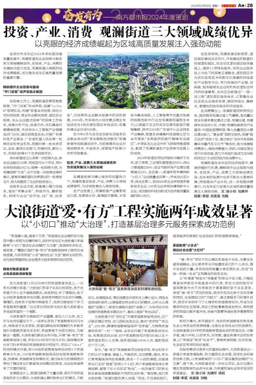 “家是最小国,国是千万家。”家庭是社会治理的宏大版图中最小却极为关键的单元。深圳市龙华区大浪街道以家庭教育“小切口”做实社会治理的“大文章”,连续两年多形式、高密度、广覆盖打造的“爱·有方”家庭教