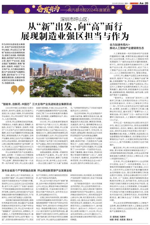 作为深圳先进制造业集聚区、未来产业试验区和东部中心城区,坪山区以工业“硬核”制造业大区的格局和担当,延续工业血脉、传承创新基因,始终将产业作为立区之本,践行“产业立区、制造业强区”发展理念,聚焦“