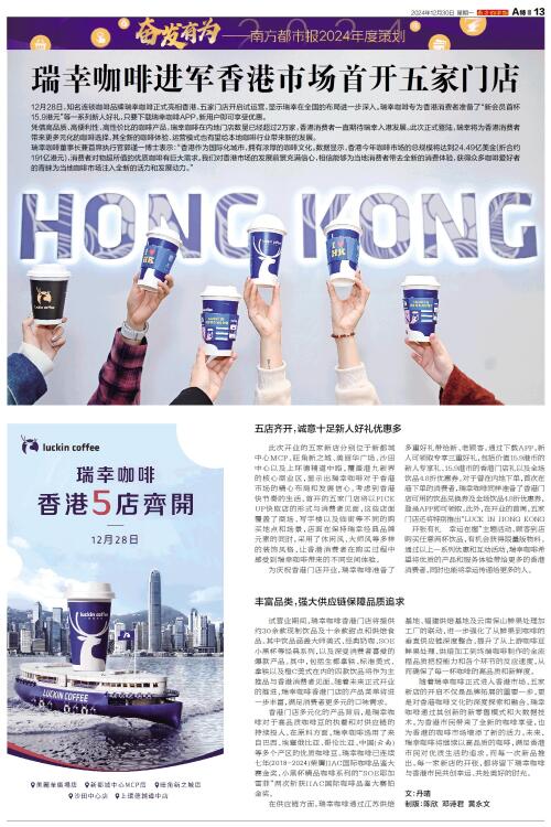 12月28日,知名连锁咖啡品牌瑞幸咖啡正式亮相香港,五家门店开启试运营,显示瑞幸在全国的布局进一步深入。瑞幸咖啡专为香港消费者准备了“新会员首杯15.9港元”等一系列新人好礼,只要下载瑞幸咖啡AP