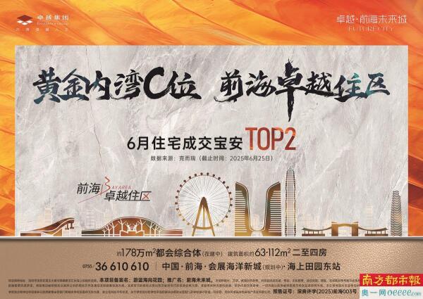 根据克而瑞最新数据,6月宝安片区住宅市场中,卓越前海未来城以亮眼表现稳居套数与金额双维度销量亚军。这一成绩不仅彰显项目在区域市场的强劲竞争力,更印证其作为前海核芯住区的高认可度。