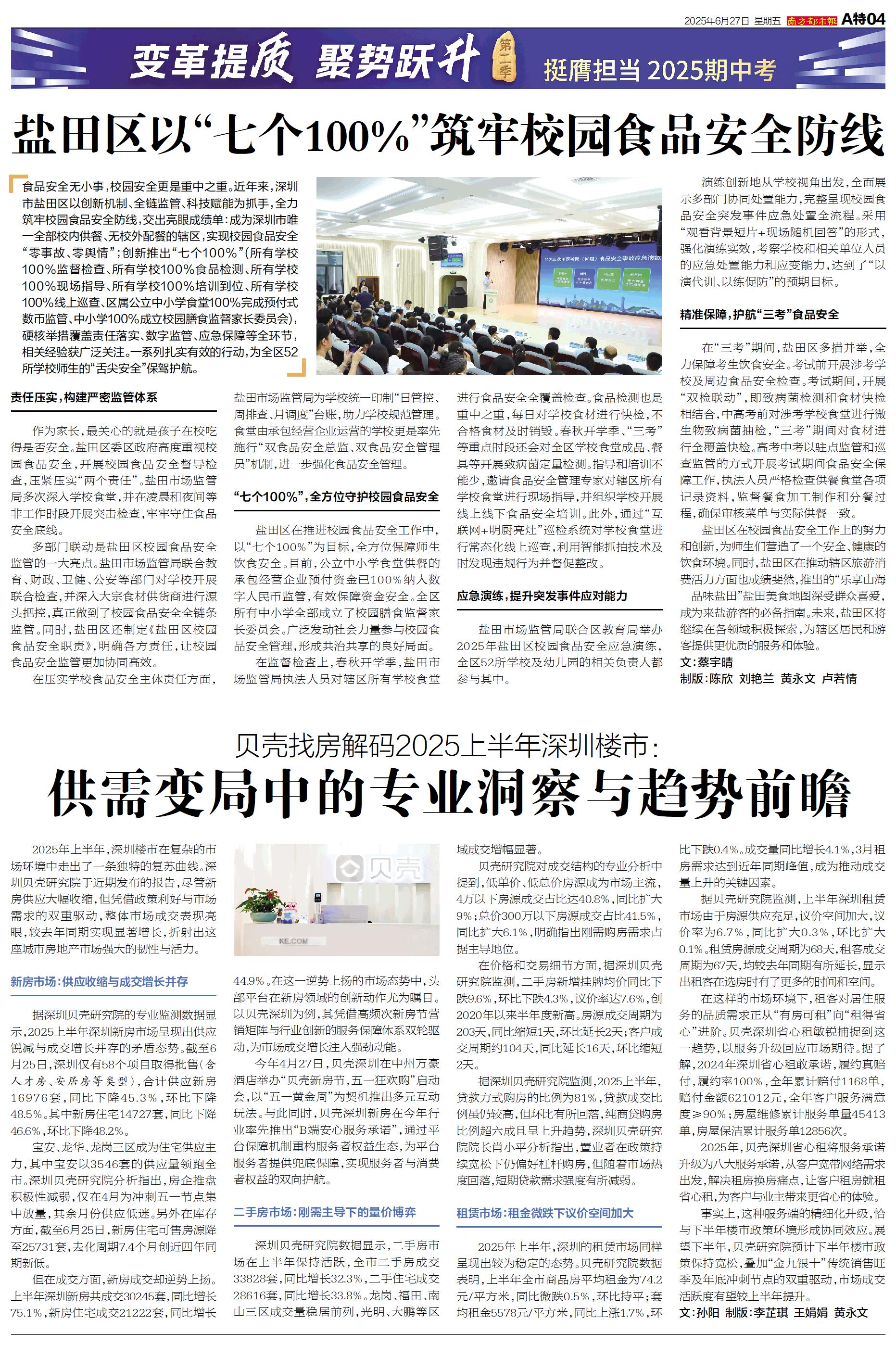 食品安全无小事,校园安全更是重中之重。近年来,深圳市盐田区以创新机制、全链监管、科技赋能为抓手,全力筑牢校园食品安全防线,交出亮眼成绩单:成为深圳市唯一全部校内供餐、无校外配餐的辖区,实现校园食品