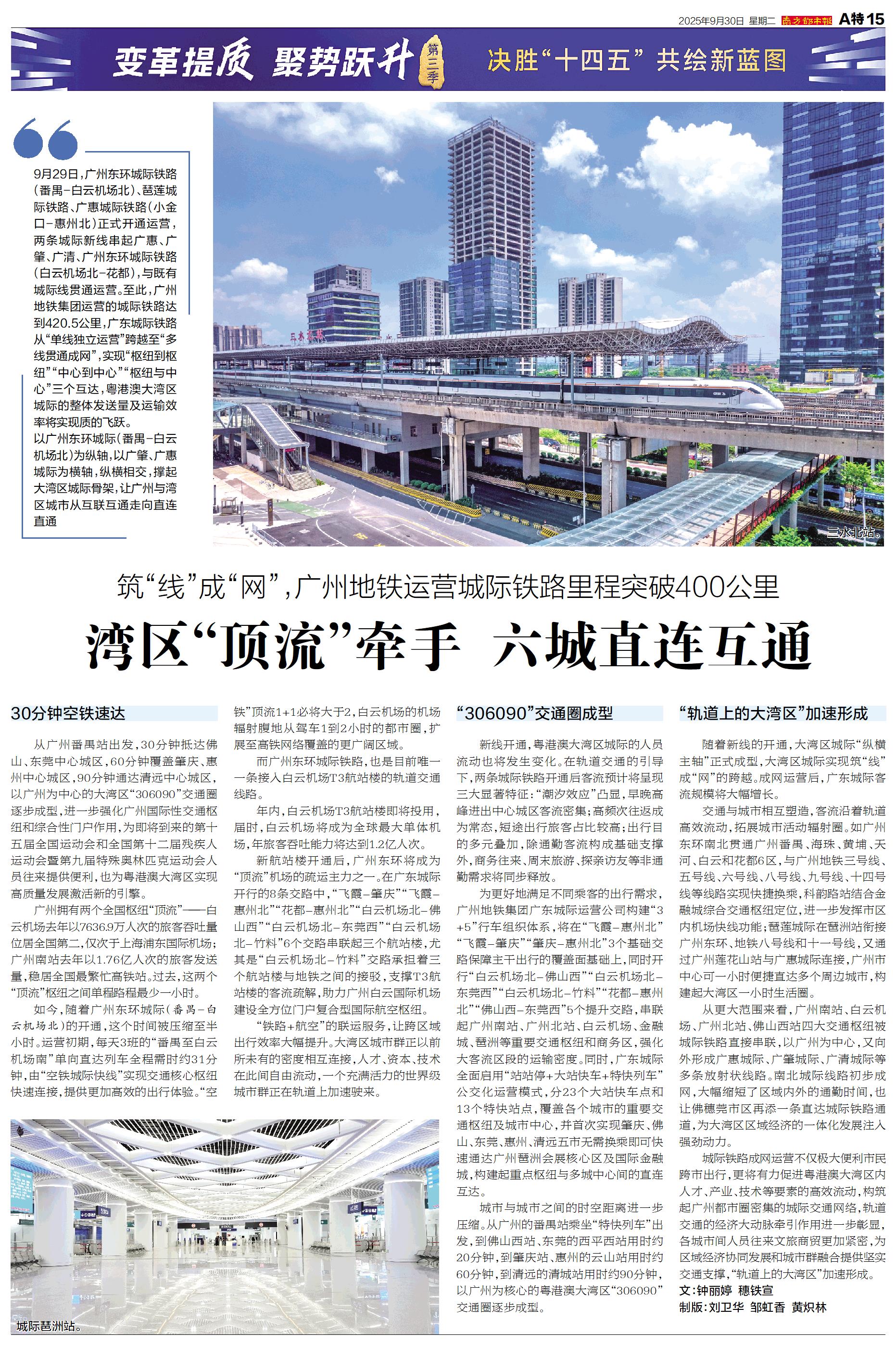 9月29日,广州东环城际铁路(番禺-白云机场北)、琶莲城际铁路、广惠城际铁路(小金口-惠州北)正式开通运营,两条城际新线串起广惠、广肇、广清、广州东环城际铁路(白云机场北-花都),与既有城际线贯通