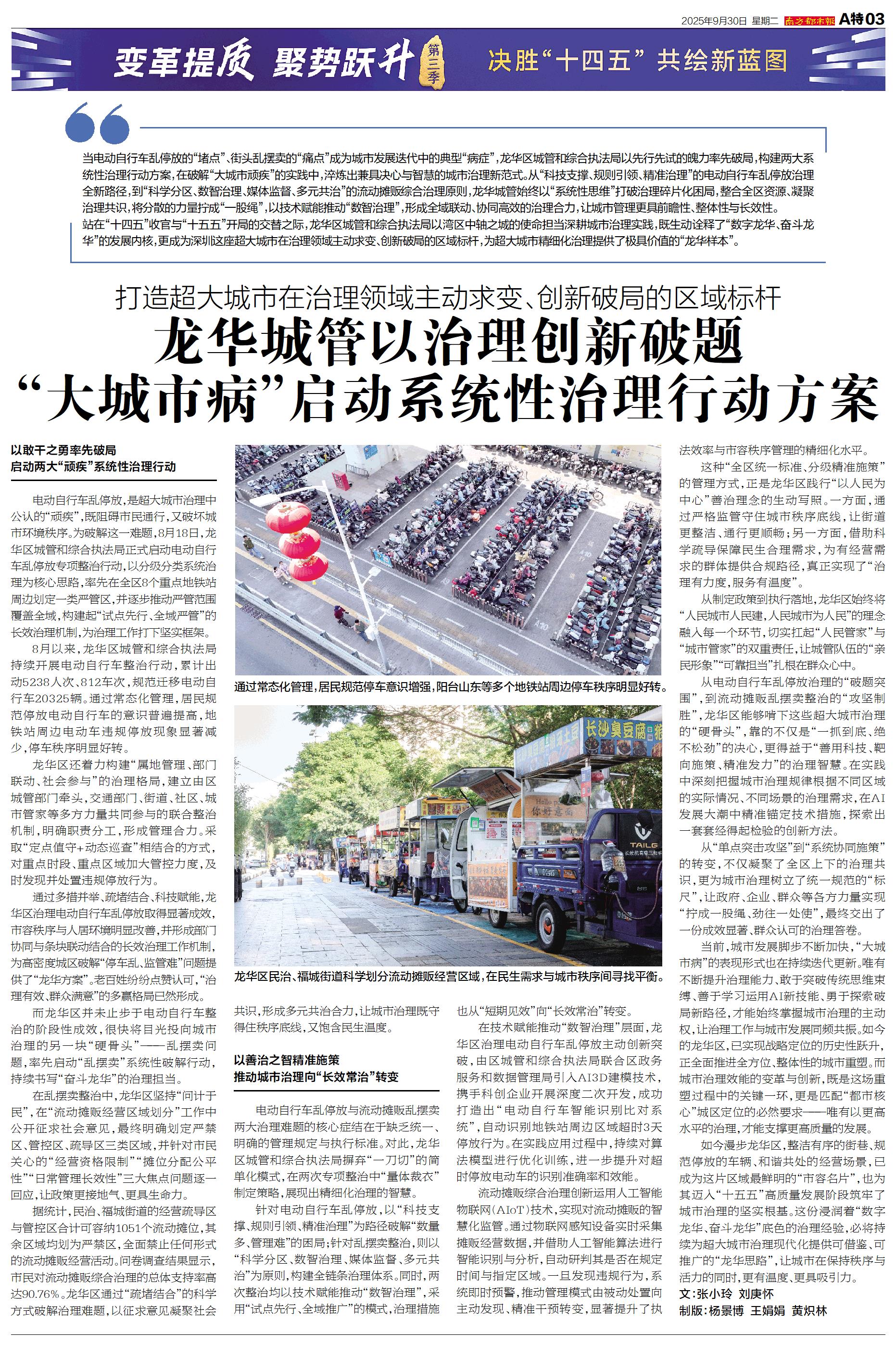 当电动自行车乱停放的“堵点”、街头乱摆卖的“痛点”成为城市发展迭代中的典型“病症”,龙华区城管和综合执法局以先行先试的魄力率先破局,构建两大系统性治理行动方案,在破解“大城市顽疾”的实践中,淬炼出