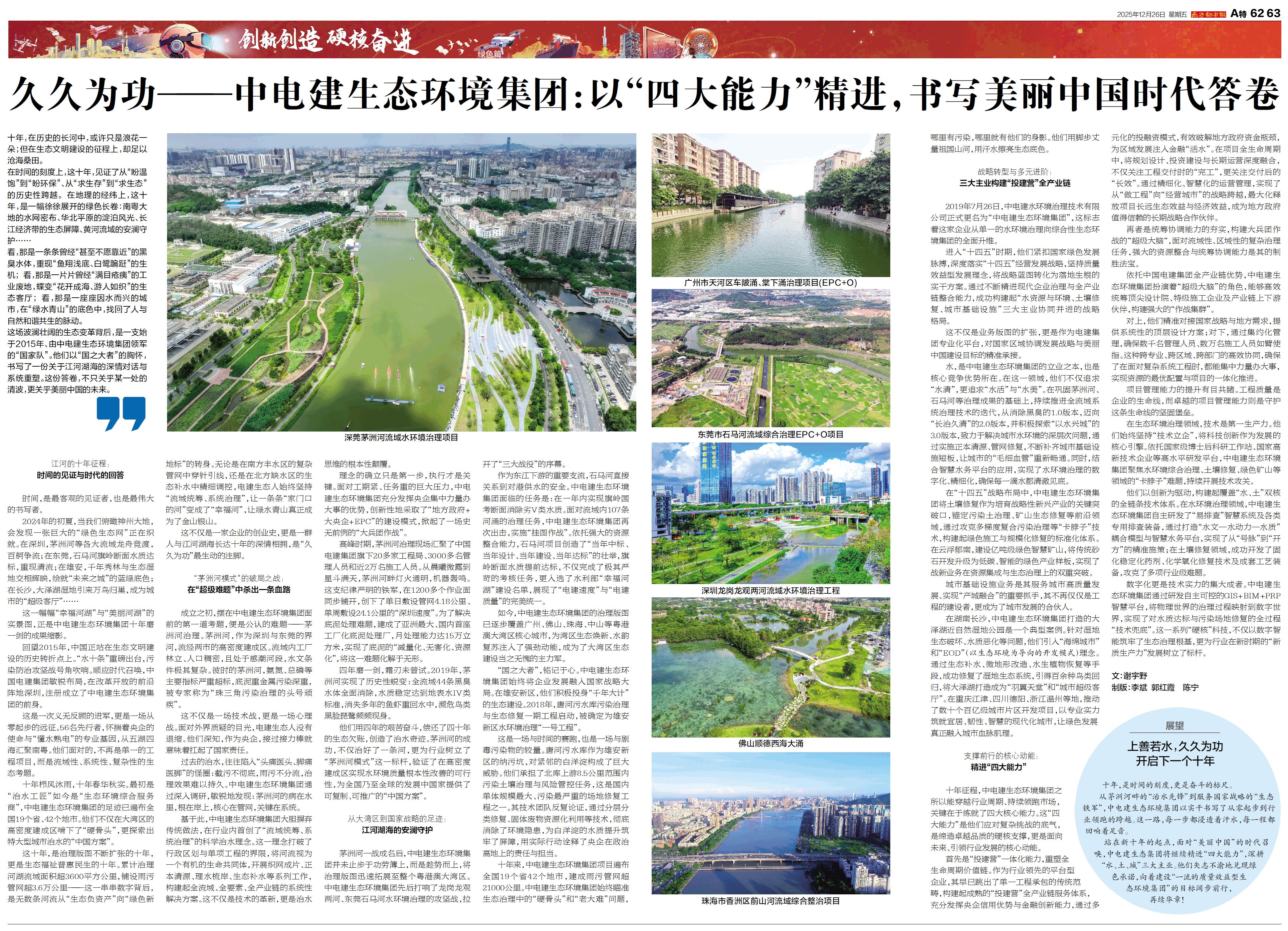 从茅洲河畔的“治水先锋”到服务国家战略的“生态铁军”,中电建生态环境集团以实干书写了从零起步到行业领跑的跨越。这一路,每一步都浸透着汗水,每一程都回响着足音。