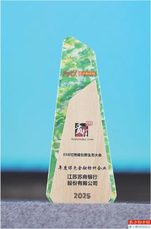 12月16日,由南方都市报主办的“2025责任中国·ESG可持续创新生态大会”在上海隆重举行。大会聚焦ESG(环境、社会与治理)前沿趋势,探讨企业可持续发展之道。凭借在绿色金融领域的卓越实践与成果,苏商银行荣膺“年度绿色金融标杆企业”称号,该行将ESG理念深度融入发展战略的探索,获得了业界的高度认可。