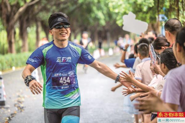 选手们的热烈反响是对赛事最好的肯定。赛事名额开放报名三日即告爆满;佛山市外选手占比近七成,其中不乏来自美国、日本、荷兰等多个国家和地区的选手。更有61名选手连续三年“赴约”,忠诚度可见一斑。来自东莞的冯先生已是第三次参赛,他感慨:“清澈的湖水,是创造个人好成绩的‘隐形助力’。”首战即夺得半程男子组冠军的河北选手李嘉兴,也对赛道的优越条件赞不绝口。甚至有独臂运动员参赛,让这项赛事增添一道独特的风景线。