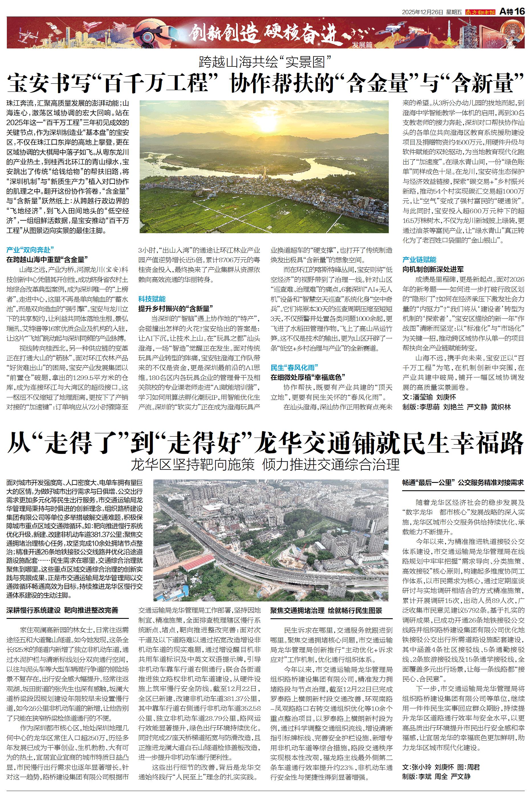 发展篇 珠江奔流,汇聚高质量发展的澎湃动能;山海连心,激荡区域协调的宏大回响。站在2025年这一“百千万工程”三年初见成效的关键节点,作为深圳制造业“基本盘”的宝安区,不仅在珠江口东岸的高地上攀