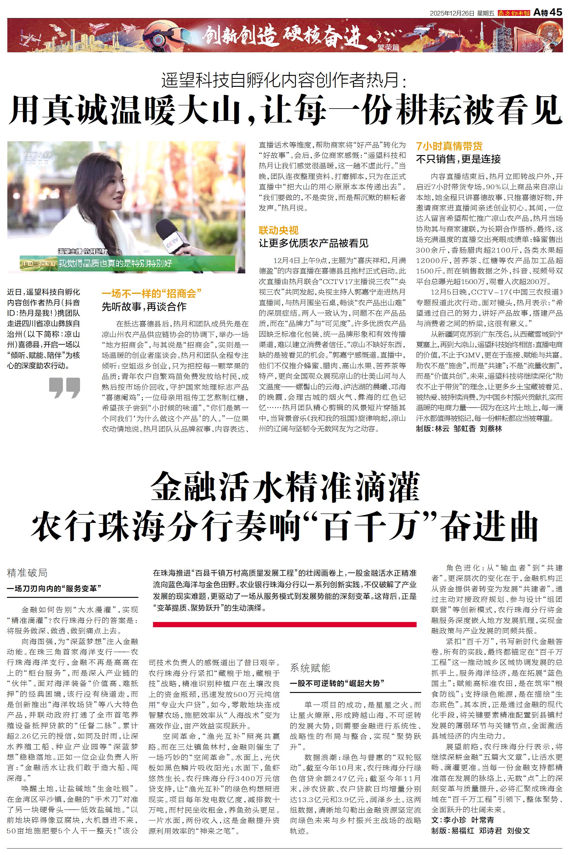 繁荣篇 近日,遥望科技自孵化内容创作者热月(抖音ID:热月是我!)携团队走进四川省凉山彝族自治州(以下简称:凉山州)喜德县,开启一场以“倾听、赋能、陪伴”为核心的深度助农行动。 一场不一样的“