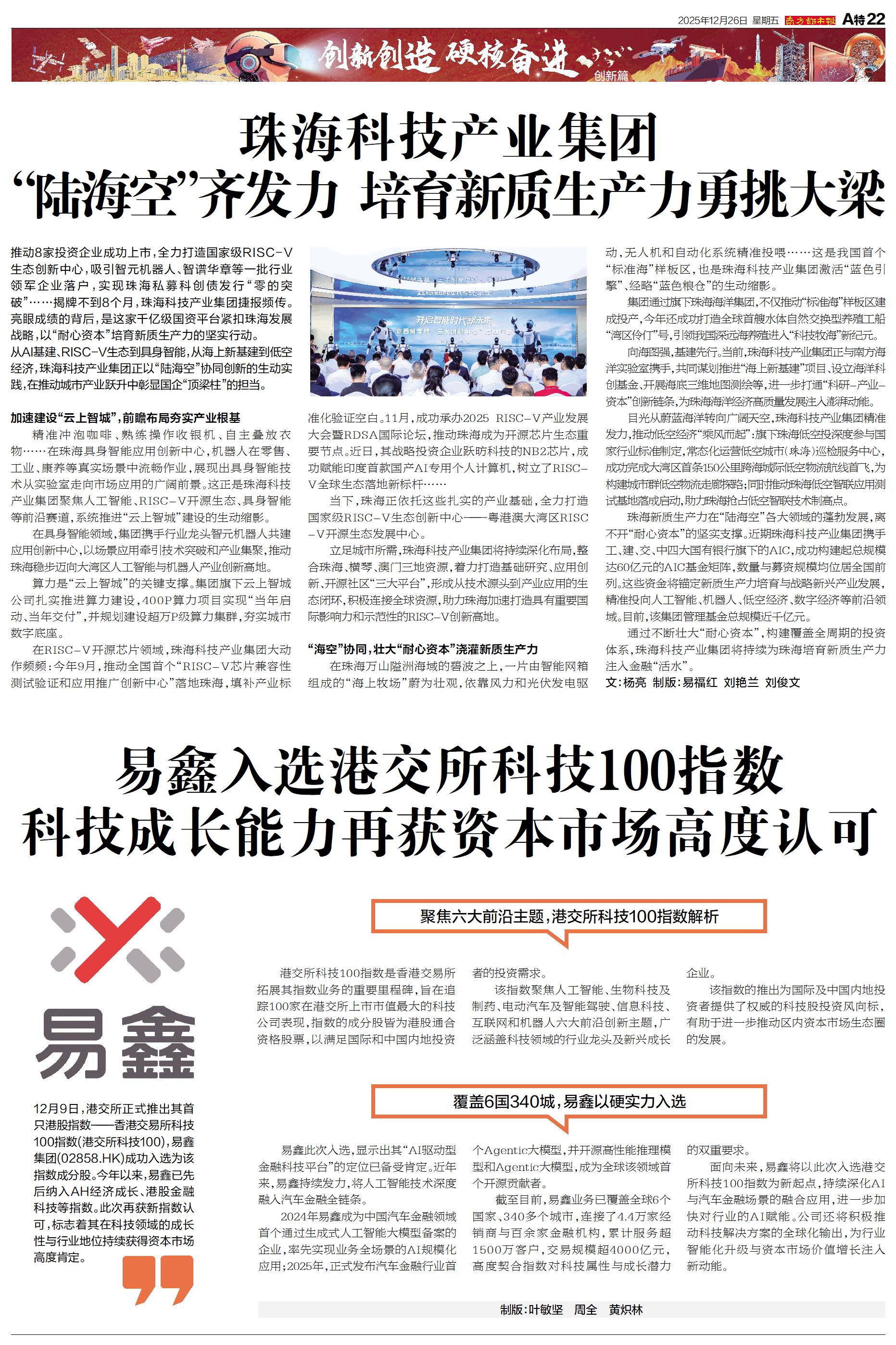创新篇 推动8家投资企业成功上市,全力打造国家级RISC-V生态创新中心,吸引智元机器人、智谱华章等一批行业领军企业落户,实现珠海私募科创债发行“零的突破”……揭牌不到8个月,珠海科技产业集团捷