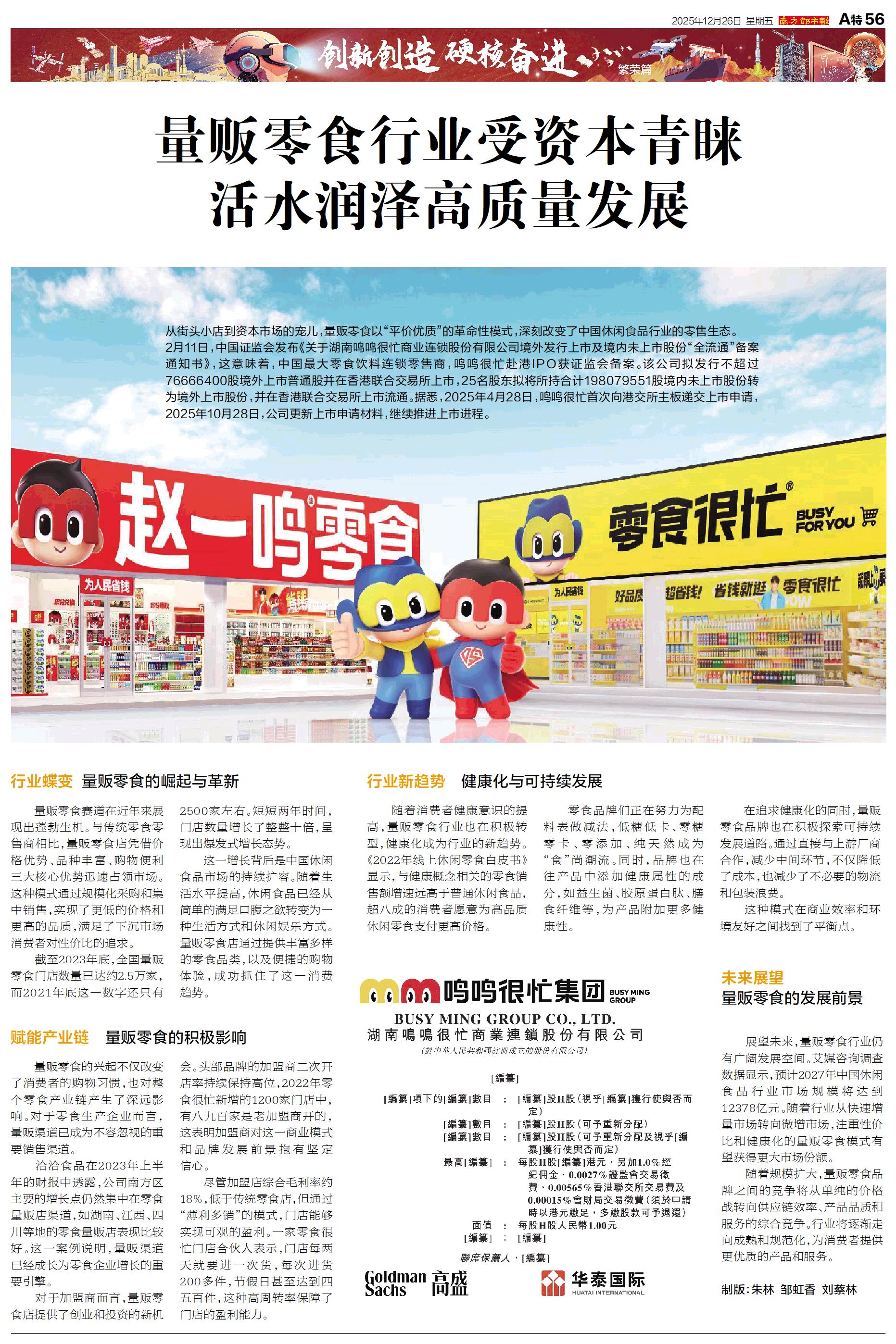 繁荣篇 从街头小店到资本市场的宠儿,量贩零食以“平价优质”的革命性模式,深刻改变了中国休闲食品行业的零售生态。 2月11日,中国证监会发布《关于湖南鸣鸣很忙商业连锁股份有限公司境外发行上市及境