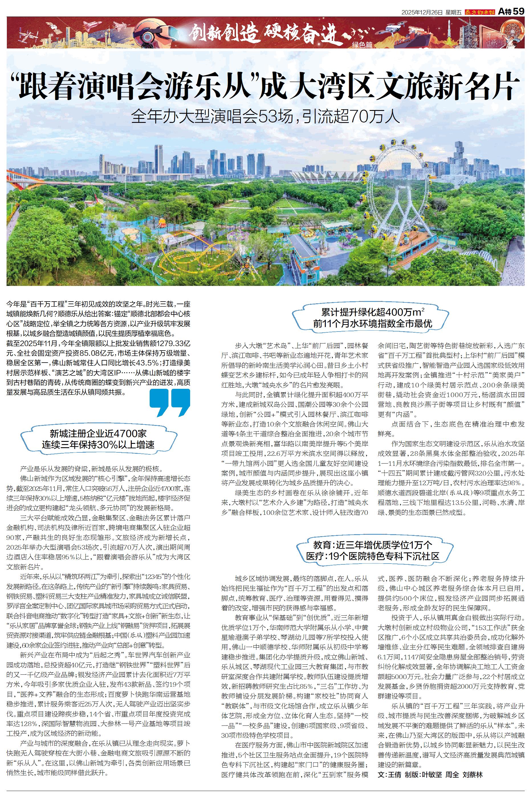 绿色篇 今年是“百千万工程”三年初见成效的攻坚之年。时光三载,一座城镇能焕新几何?顺德乐从给出答案:锚定“顺德北部都会中心核心区”战略定位,举全镇之力统筹各方资源,以产业升级筑牢发展根基,以城乡