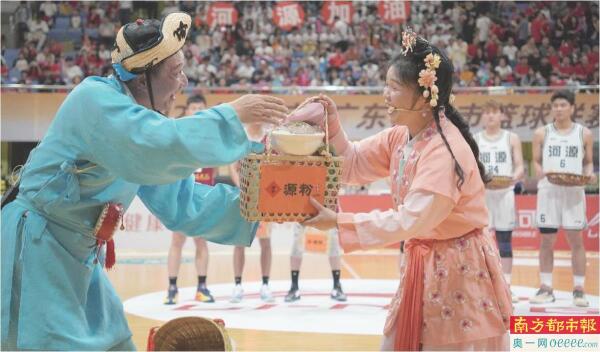 ①3月29日晚,广州天河体育中心体育馆,广州特色“鸡公榄”亮相赛场。南都拍客 吴文军 摄