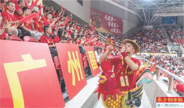 在广州,粉丝团举着“掂过碌蔗”助威,吃着“鸡公榄”看比赛。