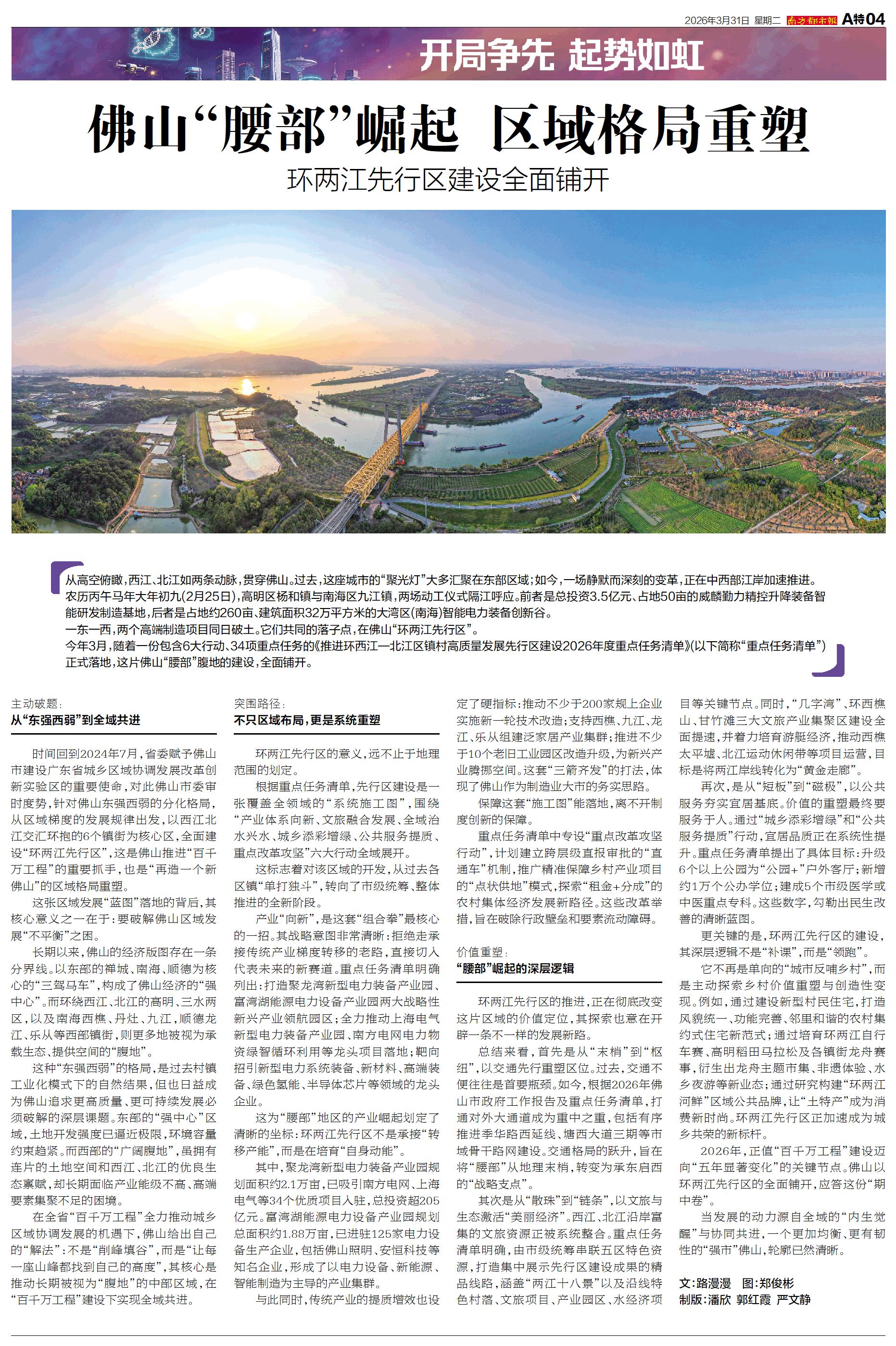 从高空俯瞰,西江、北江如两条动脉,贯穿佛山。过去,这座城市的“聚光灯”大多汇聚在东部区域;如今,一场静默而深刻的变革,正在中西部江岸加速推进。 农历丙午马年大年初九(2月25日),高明区杨和镇与