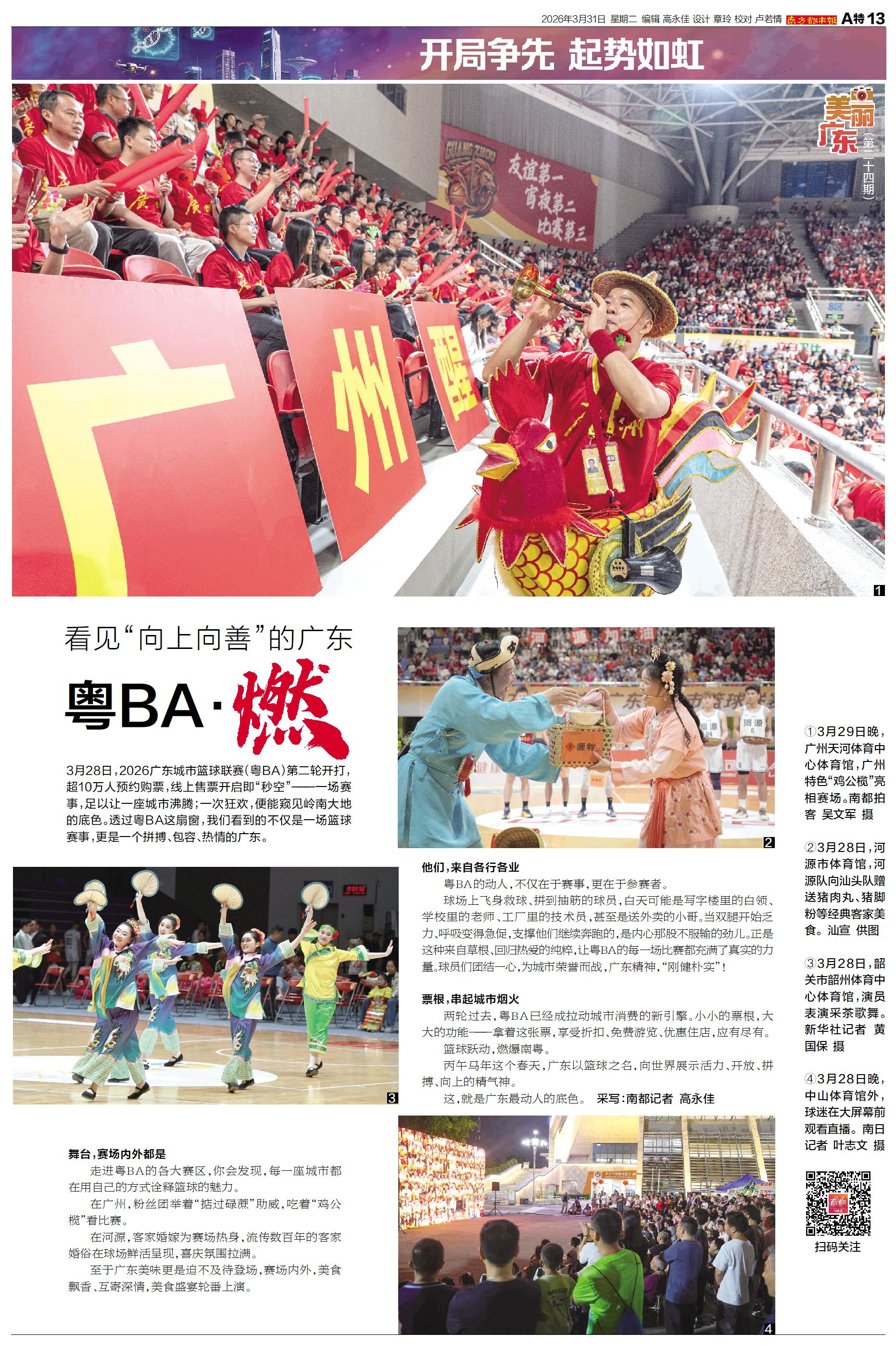 3月28日,2026广东城市篮球联赛(粤BA)第二轮开打,超10万人预约购票,线上售票开启即“秒空”——一场赛事,足以让一座城市沸腾;一次狂欢,便能窥见岭南大地的底色。透过粤BA这扇窗,我们看到的