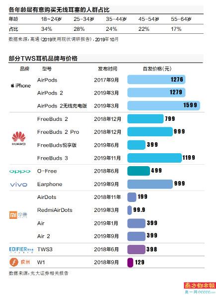 广州东莞蓝牙耳机制造商和乐电子有限公司总经理叶伟强告诉南都记者,他们的自有耳机品牌QCY价格区间在几十元至200元不等,年销售额在10亿元左右,并且仍在翻倍增长。