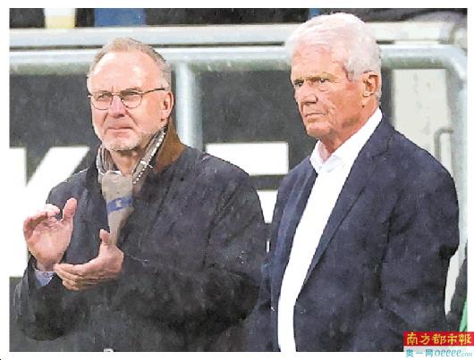 ←鲁梅尼格(左)与霍普一起“尴尬”观赛。新华社发