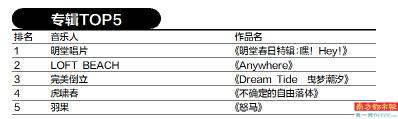 由华语音乐传媒盛典和网易云音乐联合推出的硬地原创音乐榜,4月榜公布了过去一个月的优秀音乐作品。专辑榜上,由明堂音乐群星出品的《明堂春日特辑:嘿!Hey!》稳坐冠军,这张以urban音乐为主色调,兼容嘻哈、电子和R&B的EP,以“鼓舞的能量”为核心,用出彩的律动为这个特别的春日加油打气;亚军来自新乐队Loft Beach的《Anywhere》,以迷幻和英伦风的摇滚,带出另一种澎湃的动感;季军则由完美倒立乐队的《Dream Tide 曳梦潮汐》摘得。单曲榜法兹乐队的EP《隼》高居冠军,注重强劲的贝斯点线与鼓镲横撞的快感,据乐队介绍,“吉他旷远神秘的乱语中,以风的弯曲挥舞多肢的烈焰,身体幻想重叠,掰开了血红肉髓,寻找自己的烙印。”亚军《河流》来自东莞乐队蛙池,女主唱令人耳目一新,唱出对所处环境和状态的疑问。夏天来了,快收好歌单,舞动起来!