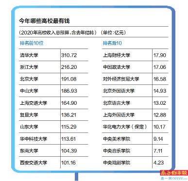 10所高校收入预算超百亿,清华“最有钱”超300亿,浙大位居第二,为216.2亿